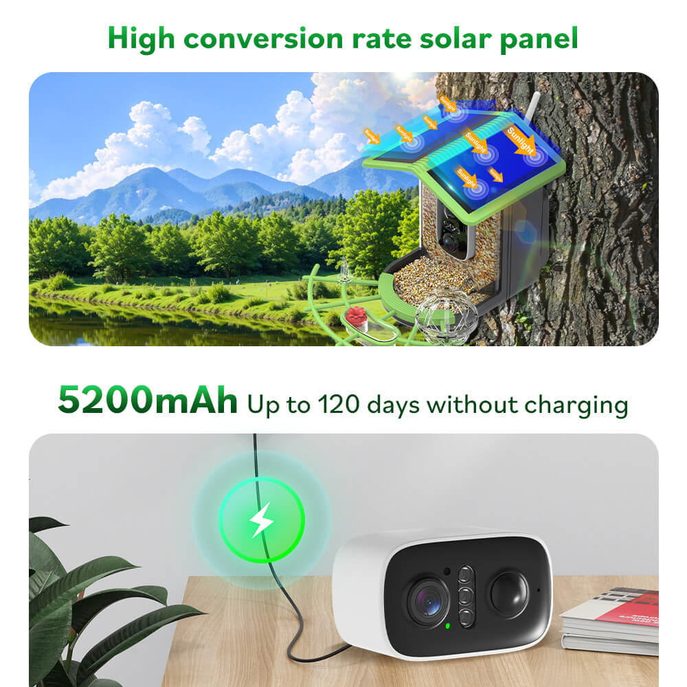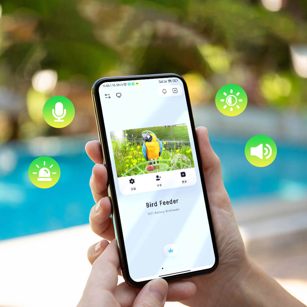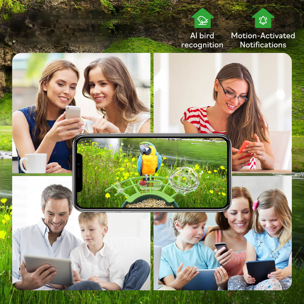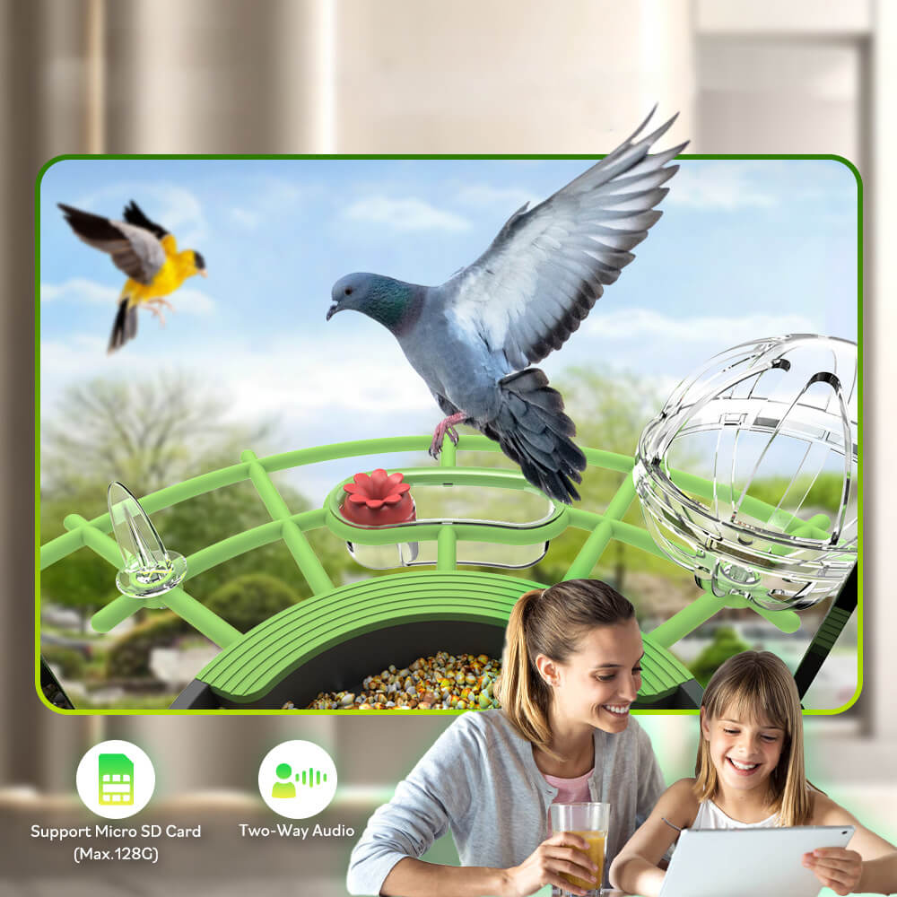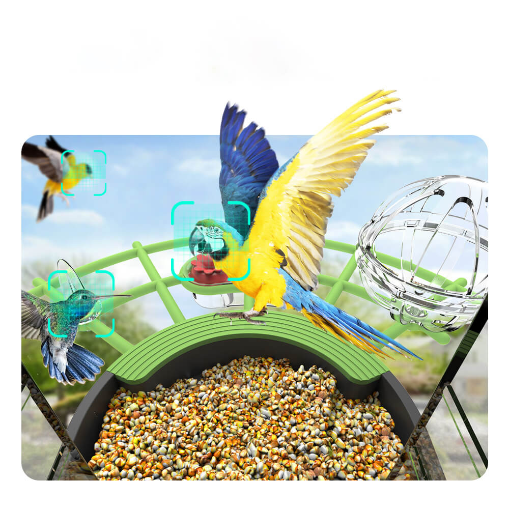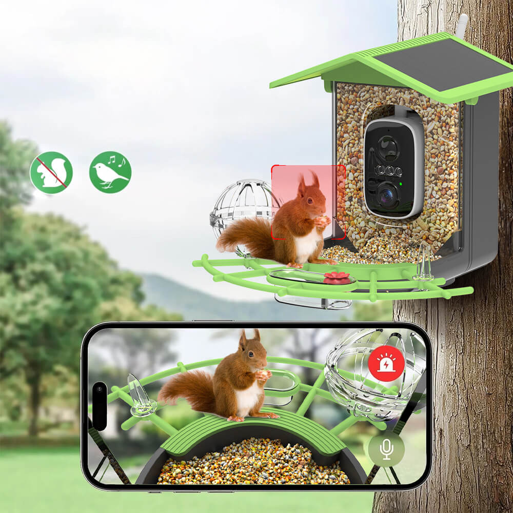 • AI-powered species recognition (e.g., birds, squirrels)