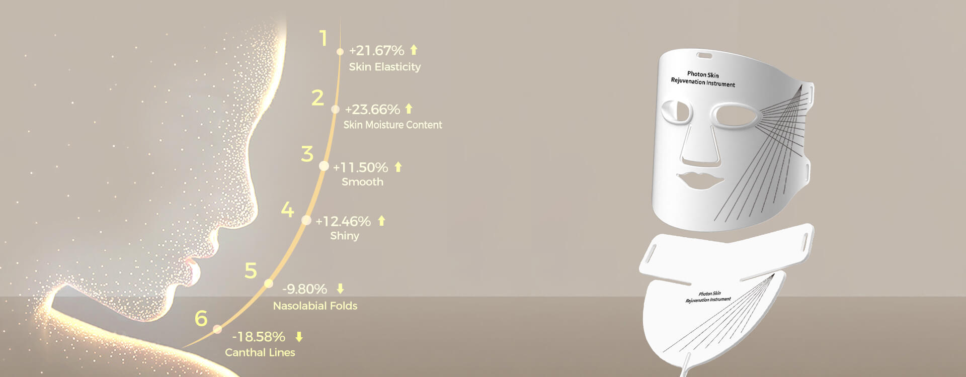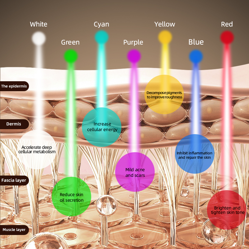 Seven high-energy light waves to stimulate collagen in the face and neck